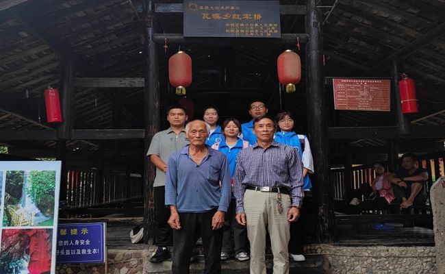 (调研小组及带队老师同两位被采访村民在瓦溪红军桥合影留念)