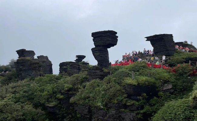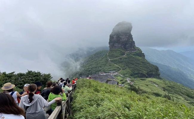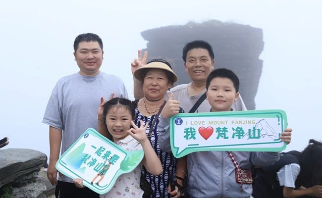 梵净山被誉为“贵州第一名山”“武陵第一峰”,是国家级自然保护区、国家5A级景区,其罕有地保存了亚热带的原生生态系统,繁衍着野生动植物7100多种,是黔金丝猴唯一的栖息地。7月9日上午,实践队一行人来到梵净山,有条不紊地进行着宣传视频的拍摄,并同步开启景区直播推介。