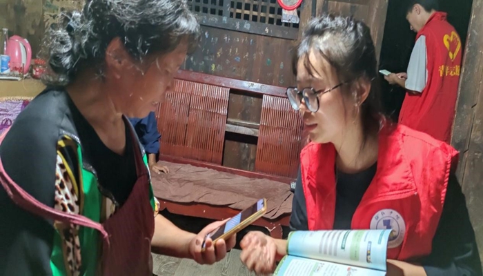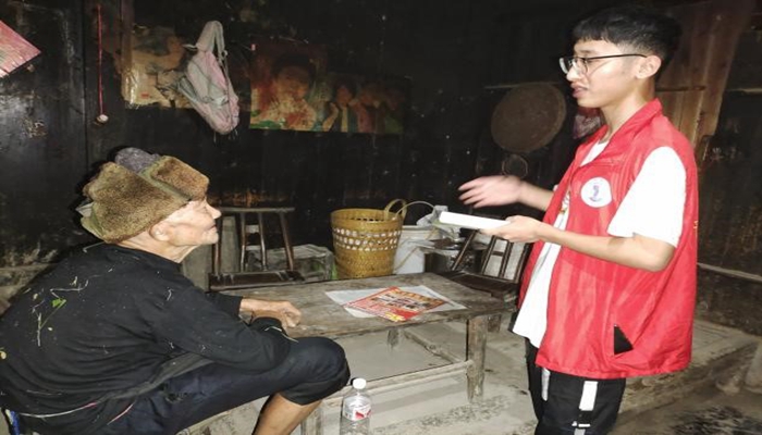 实践队成员向空巢老人了解家庭情况