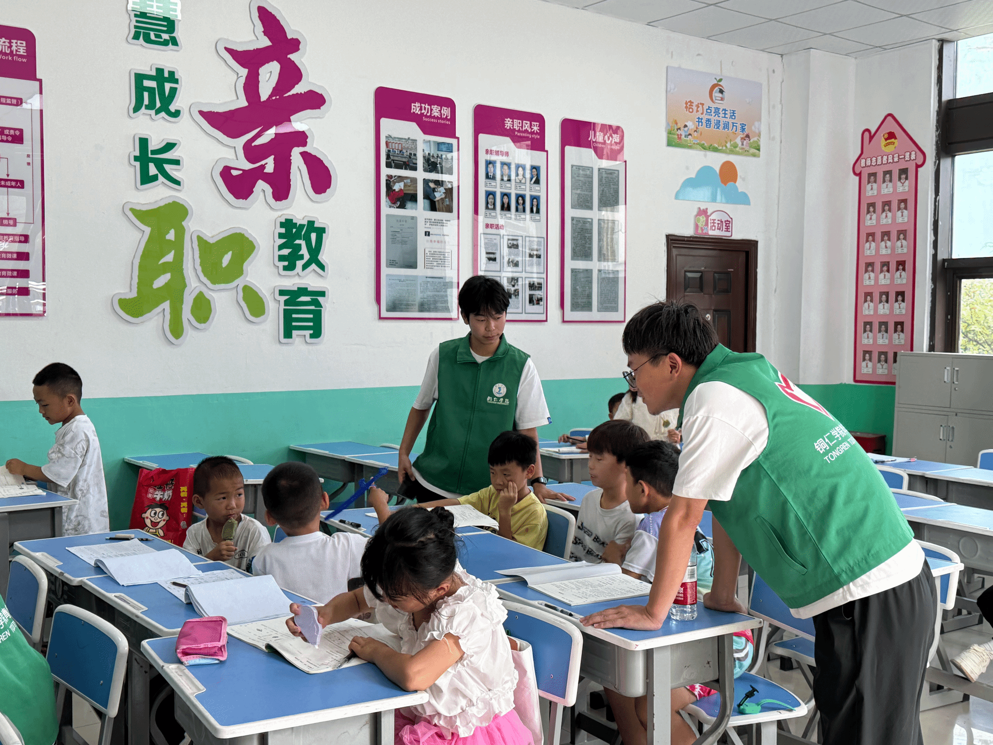 (志愿者为儿童进行作业辅导)