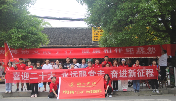 7月8日,由beat365第八期青马班20余名学员组建的“beat365英国官方网站青马先锋队”在校团委张迅老师的带领下,前往碧江区川硐街道开展以“喜迎二十大、永远跟党走、奋进新征程”为主题的暑期“三下乡”社会实践活动。活动围绕“民族团结一家亲,心手相牵向未来”“禁毒防艾践行,健康相伴你我他”等内容进行宣传,得到了川硐街道天生桥社区支部书记张荣、支部副书记张清平及各相关工作人员的大力支持。