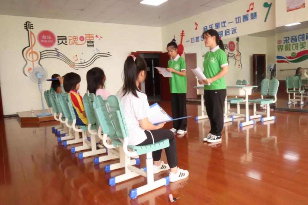 (朗诵班志愿者为孩子们讲解朗诵要素)