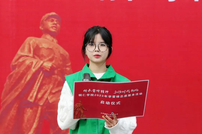 志愿者代表、国际学院2021级英语2班罗静英在发言中说,作为新时代的新青年,正处在中华民族发展的最好时期,要争做雷锋精神的种子,从小事做起、从现在做起,把雷锋精神广播在铜院校园和祖国大地上,为中华民族伟大复兴贡献青春力量。