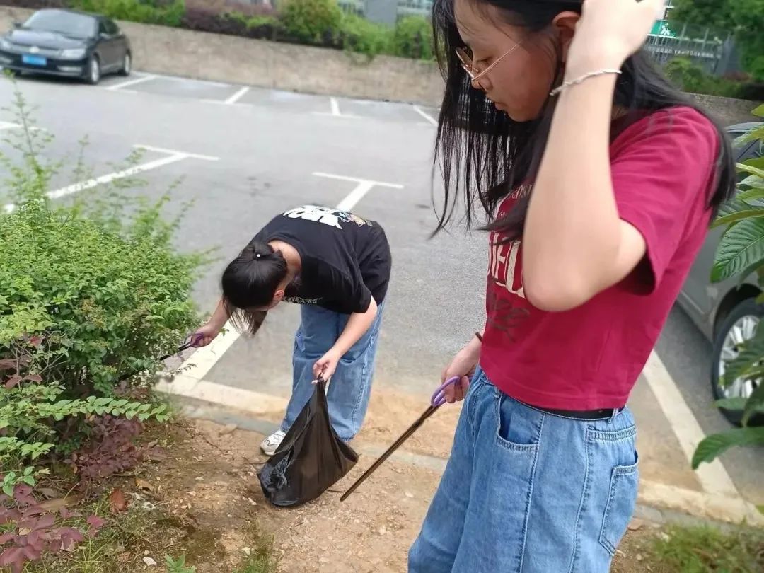 为确保活动的顺利开展,志愿者们提前了解活动流程,明确任务分工,认真做好各项准备工作。在活动现场,志愿者们手拿扫帚、垃圾夹、耙子、垃圾袋等清扫工具,深入教学楼、走廊、教室等区域开展校园清洁。志愿者们分工协作,干劲十足,部分志愿者用扫帚认真清扫路面的尘土、垃圾以及落叶,另一部分志愿者用垃圾夹、耙子清理绿地、水池中的垃圾、落叶,然后由负责收尾工作的志愿者将垃圾收到垃圾袋中,放至规定地点。志愿者们认真地进行卫生清扫,不放过任何一个角落,经过大家的辛苦劳动,校园环境焕然一新。