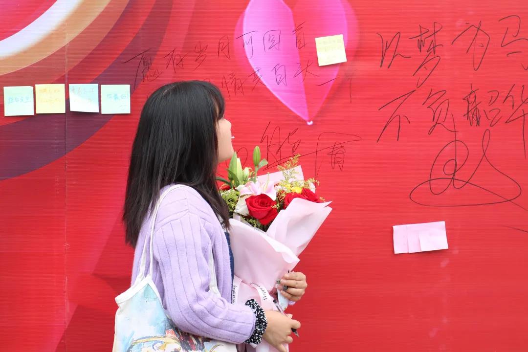 活动现场,志愿者为全校师生准备了玫瑰、钥匙扣、扇子等礼品,来往师生被精美礼品所吸引,纷纷参与到活动中来。同学们将自己对家人、老师、朋友的感谢与思念写在表白墙上,字里行间流露出的真情实感打动了在场许多师生。活动现场开展了“默契大考验”“爱要大声说出来”“猜字谜”等小游戏,这些小游戏旨在促进人与人之间的情感交流,现场氛围热烈而温馨。