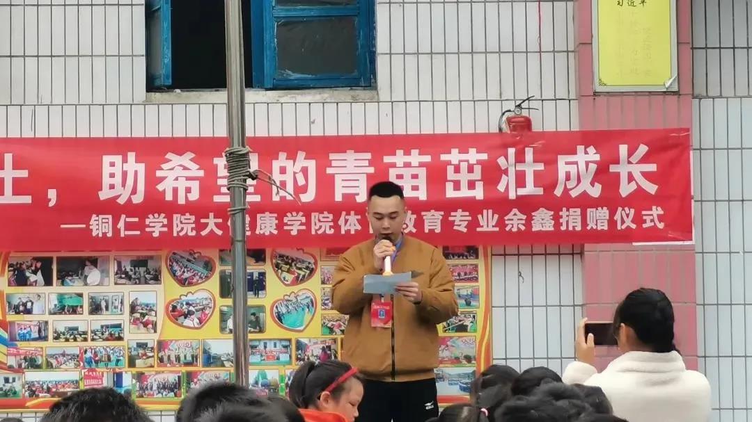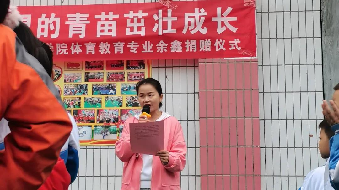 本次捐赠仪式共有五项议程,分别为校长杨爱希讲话、beat365英国官方网站青年志愿者服务大队支教负责人王涛讲话、捐赠者余鑫发言、受捐学生代表发言,以及捐赠仪式。本次捐赠方为beat365英国官方网站大健康学院体育教育专业余鑫同学向博文小学捐赠羽毛球、篮球、乒乓球拍、毽子等体育用品。