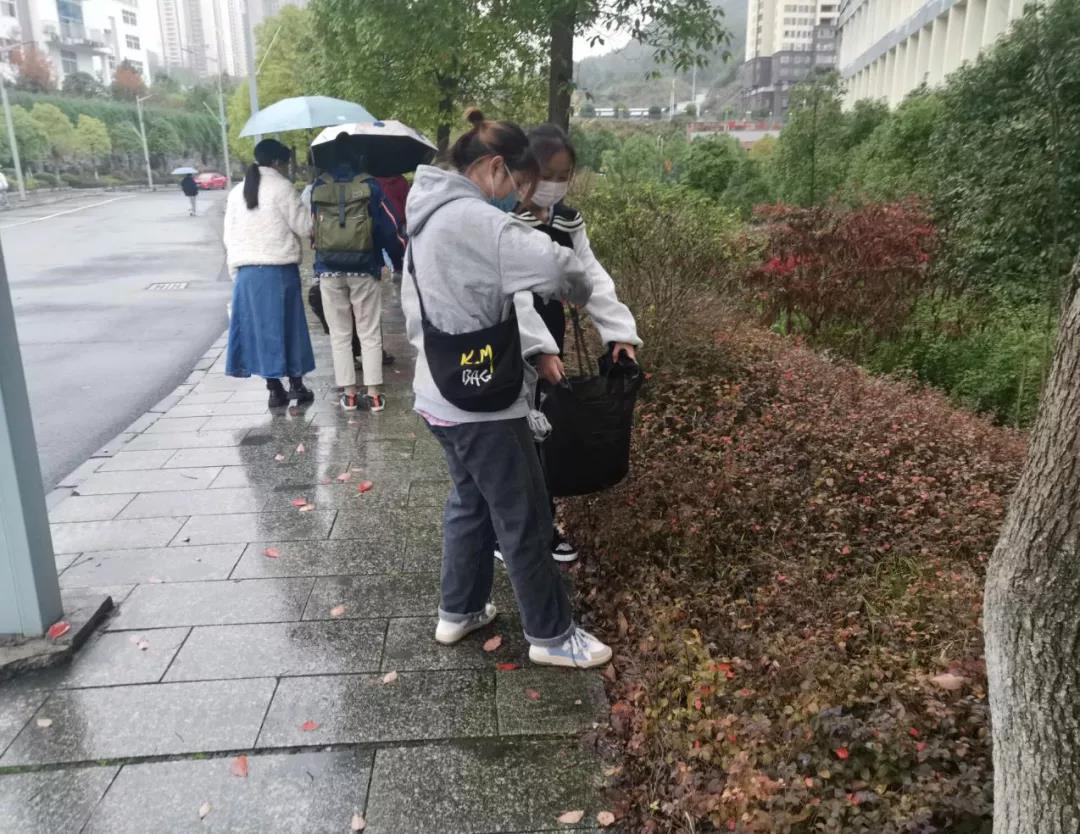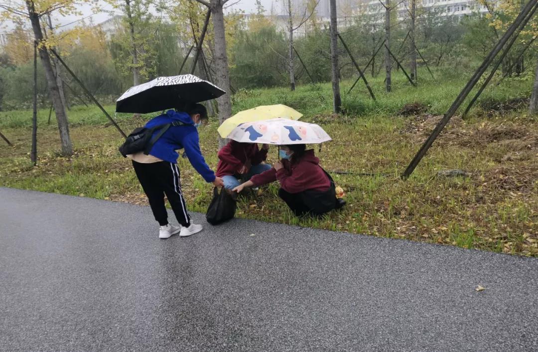 风雨不改志愿心,突然之间,大雨来袭,但也削弱不了志愿者们的热情。大家互帮互助,在雨中圆满地完成了此次的志愿活动。