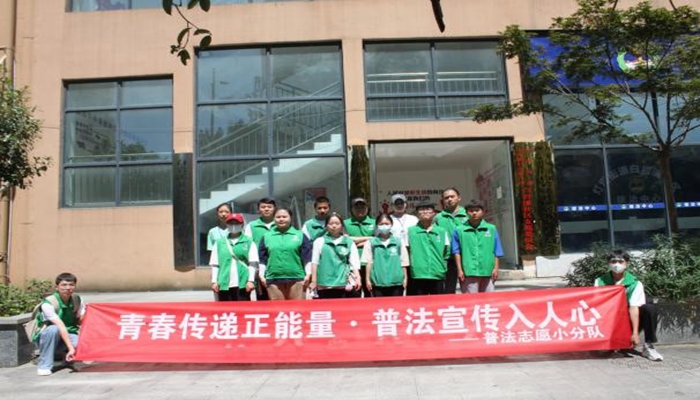 法制教育的重点对象之一也正是这些“祖国的花朵们”。7月8日下午,志愿者们来到中南门古城的周逸群小学,临近期末考试,为不影响正常教学的开展,志愿者特地选择放学时间来进行普法宣讲。志愿者根据他们的年龄特点,思想实际和接受能力,特地整理了简单又好记的《普法三字经》,便于小朋友们学习。其次,每个志愿者耐心回答小朋友们的“十万个为什么”以及讲解法律常识。作为“祖国花朵”的他们理应知道国家有法律,人人都要遵守法律,一切违法犯罪行为都要受到法律制裁。应初步了解宪法规定和法律规定的公民权利和义务与小学生有关的内容。小学生应从小学法守法,向同违法犯罪行为作斗争的英雄人物学习,做个遵纪守法少年。