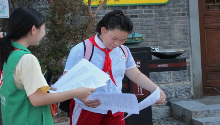 7月7日,志愿者们去到铜仁著名历史文化旅游景点——中南门古城。对游客以及商户进行法制宣传,得益于当地社区普法工作开展效果好,人民群众法律意识提高,活动进行得非常顺利。
