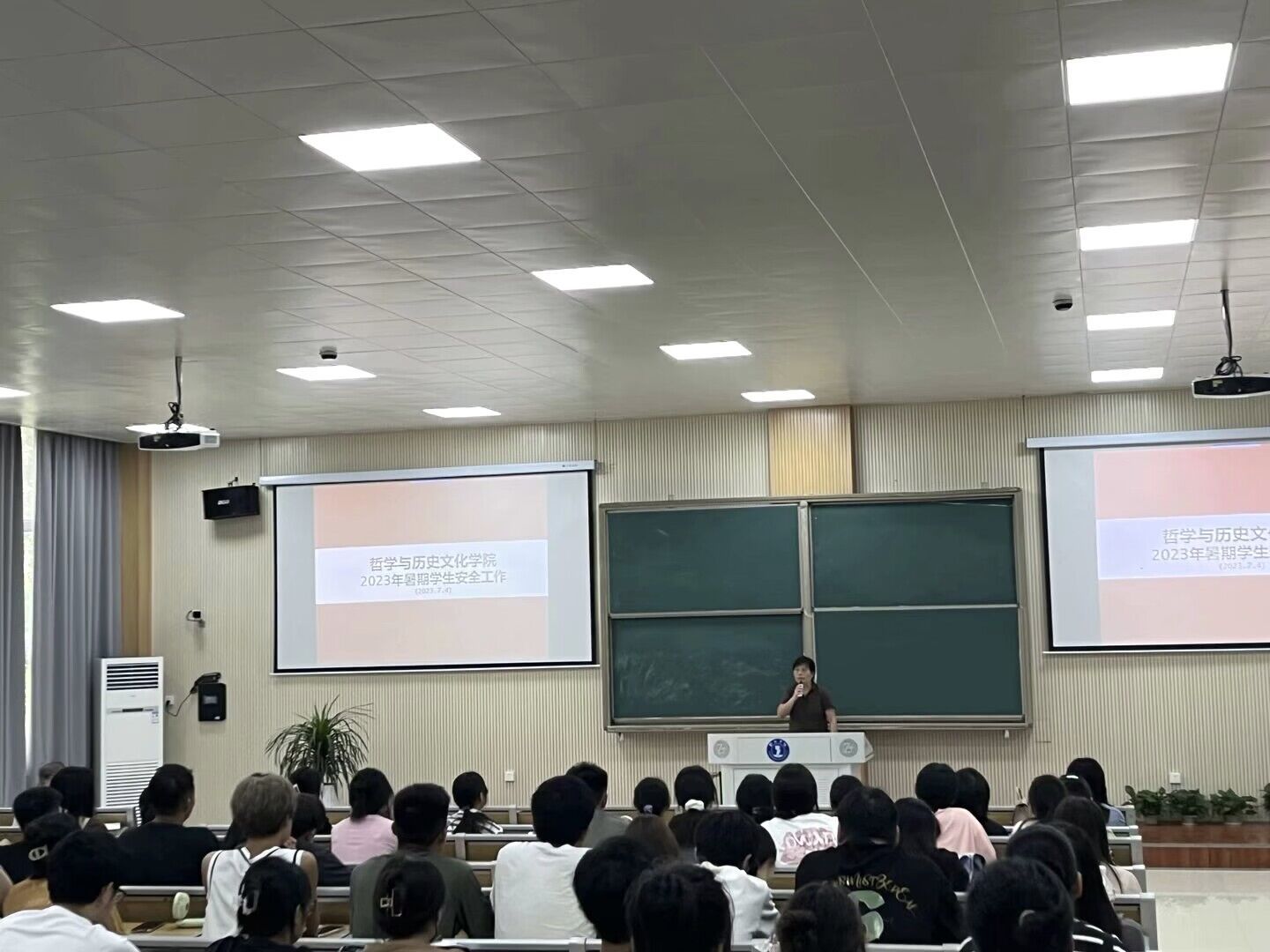 7月4日中午,我院在博思楼102教室组织召开2023年暑期学生安全工作会议。我院党委书记皮坤乾,党委副书记杨兴英,副院长李锦伟,学生科负责人赵娟,各班辅导员及学生参加会议。会议由赵娟主持。