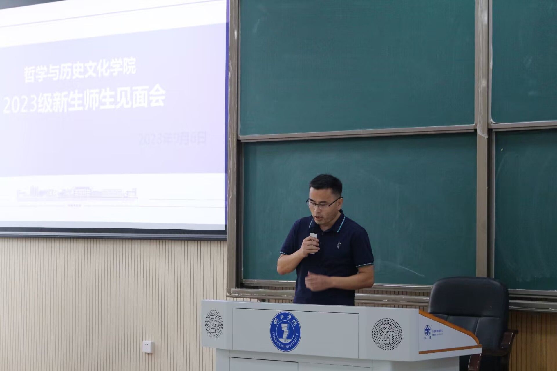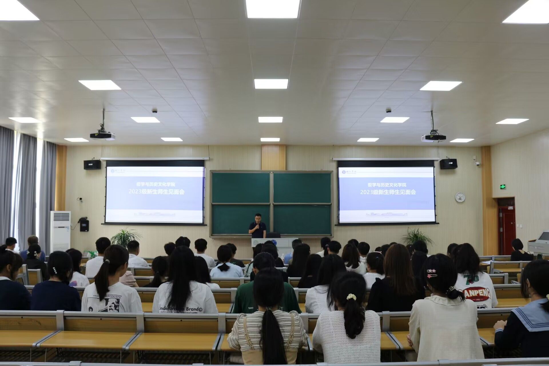 9月7日上午,我院在博思楼102教室召开哲学与历史文化学院2023级新生师生见面会。院党委副书记杨兴英、副院长李锦伟、系主任杨峻岭、各科室负责人及新生班主任李怡净、各科任老师和2023级全体新生参加了会议。会议由姚雪洁老师主持。