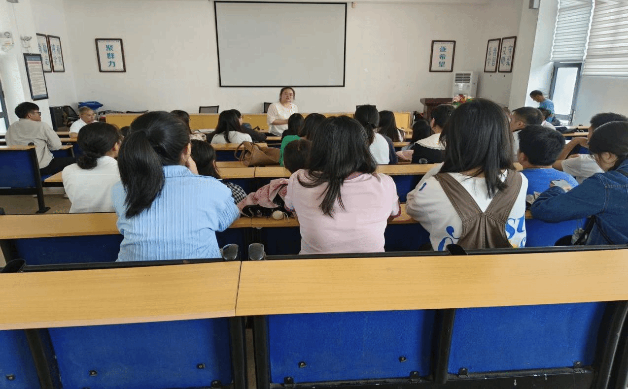 群希中学石副校长介绍了学生实习的相关安排:按阶段分配任务,能力突出的实习学生可以提前上讲台讲课。第一个月:跟班辅导,跟着指导老师听课学习。第二个月:学习当班主任,跟班学习、指导。第三个月:试教,在前期听课、备课的基础上,一心上课。第四个月:综合训练,既当班主任又试教,并组织班会、集体活动,完成实习总结、反思和相关材料。