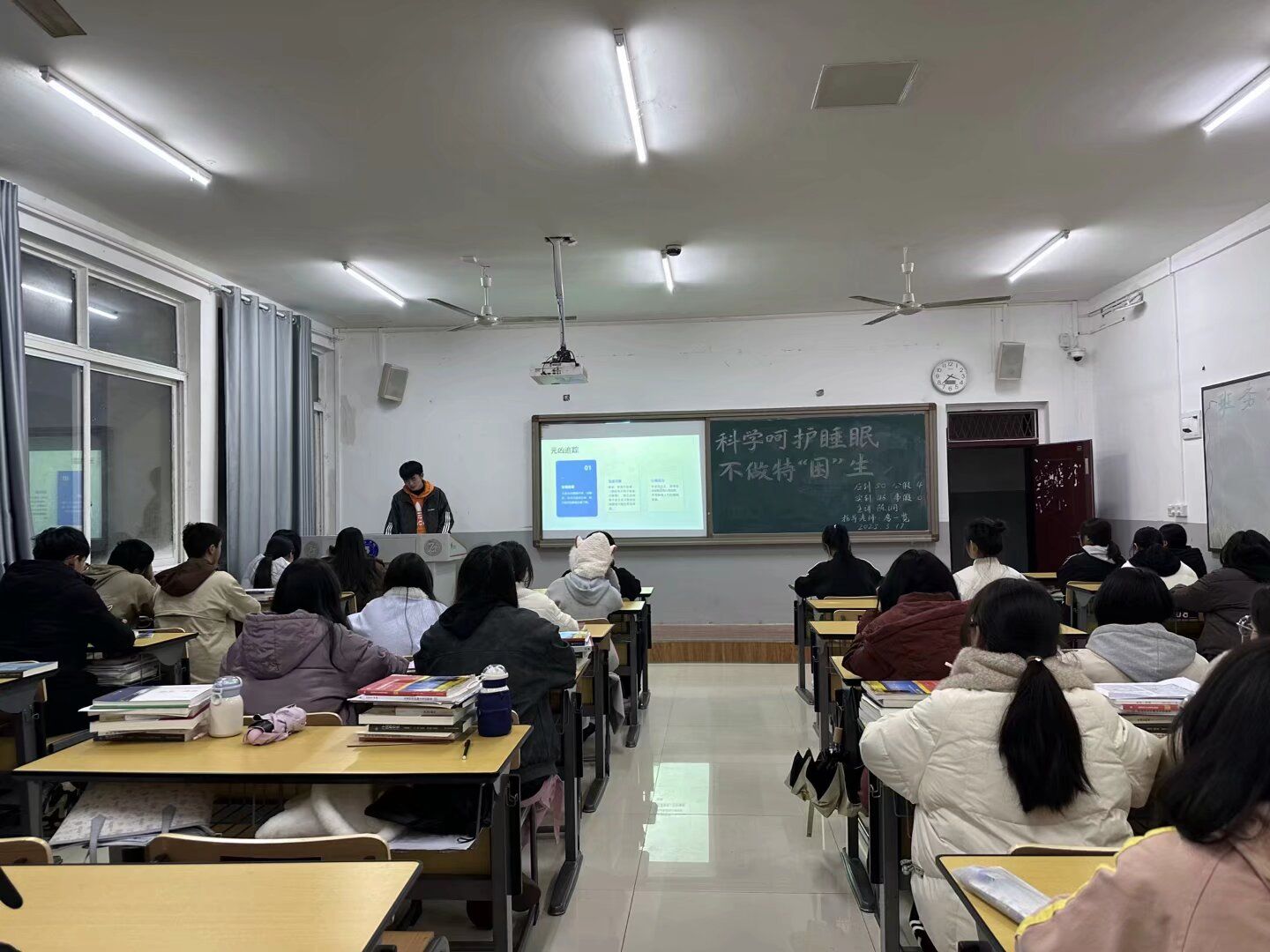 3月17日晚,我院各班依仁楼A组织召开了“科学呵护睡眠不做特‘困’生”主题班会