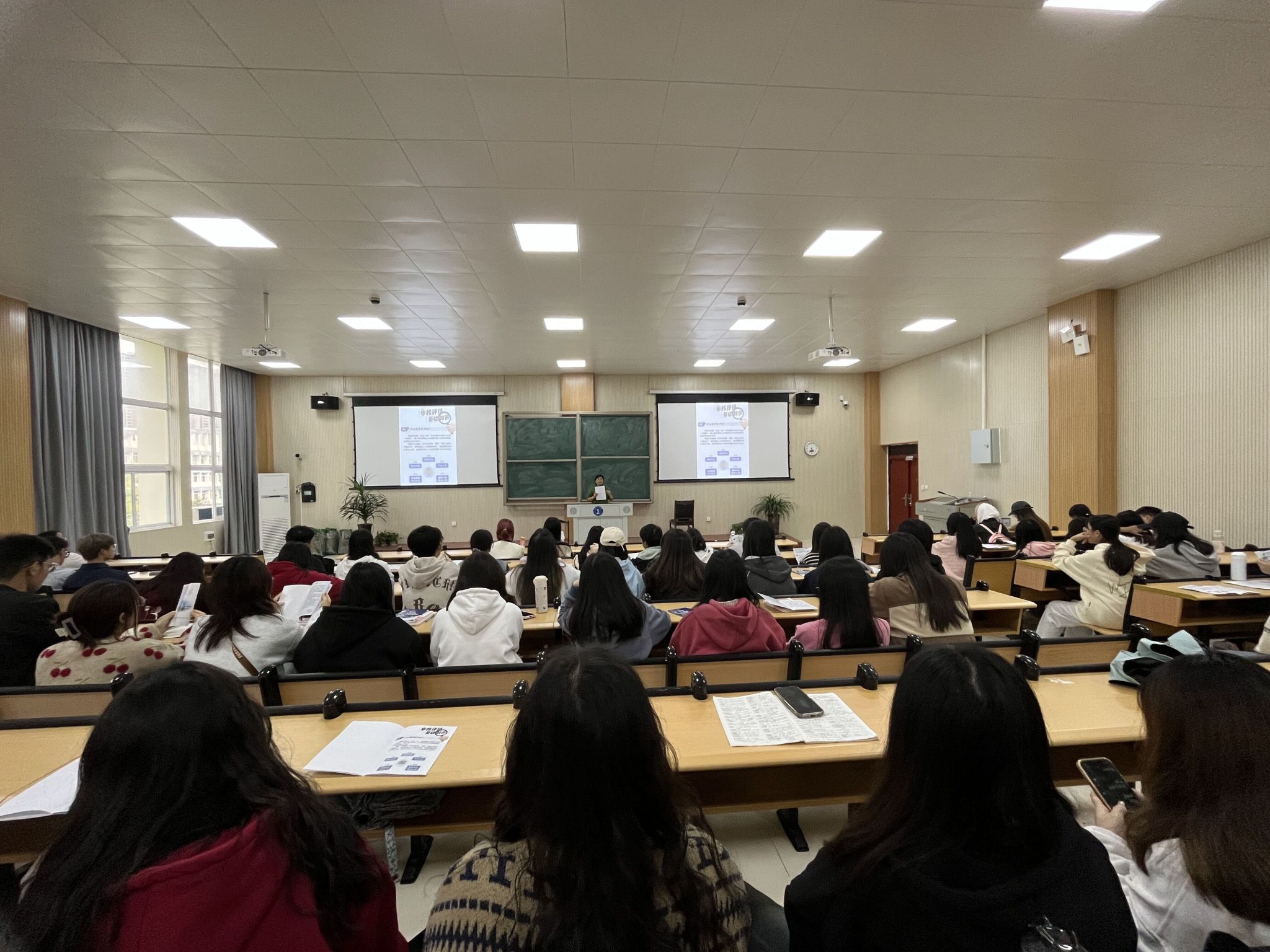 10月13日下午,我院各班于博思楼305召开了beat365英国官方网站本科教育审核评估宣传大会。会上,我院党委副书记杨兴英宣讲了审核评估的基础知识,让同学们了解了审核评估是“五位一体”评估制度中院校评估的一种模式,核心是对学校人才培养目标与培养效果的实现状况进行评价。审核评估强调以学生为中心”,充分关注了学生身心发展的需要重视学生对教育教学工作的评价,让学生成为评估的真正受益者。之后杨峻岭老师补充强调学生主动学习,勤奋进取,做到课堂纪律好、到课率高、听课状态好,努力展现良好精神风貌。通过这次宣传大会,让同学们深刻了解本科教审核评估工作的目的、意义以及与自身的密切关系,不断提升自身思想道德修养,讲礼貌、讲文明以饱满的热情积极配合学校做好审核评估的各项工作