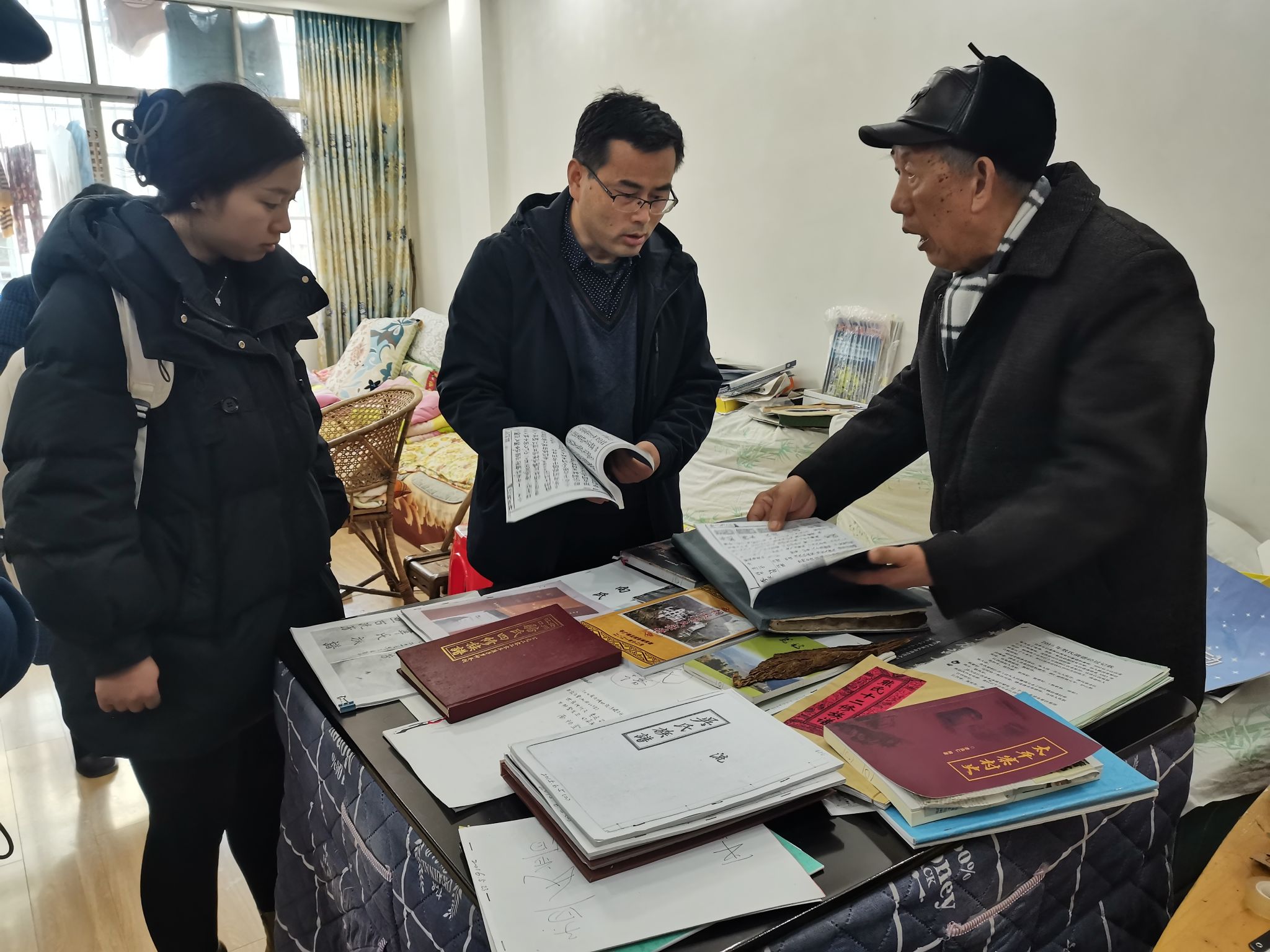 201413日,副院长李锦伟,党政办主任刘剑,图书馆档案科科长胡丽娟以及2023级马克思主义理论硕士研究生陈燕霞一行4人,赴江口县调研文物保护工作。江口县总工会退休干部杨国庆、王世进,贵州梵景坊特色旅游文化发展有限公司负责人李永华等人陪同调研。在江口县城,调研组一行先后到江口中学、江口县档案馆、贵州梵景坊特色旅游文化发展有限公司调研,实地参观杨国庆等人近年来收集的书籍、族谱、图片、文物等成果展示,近距离聆听杨国庆等人的收藏事迹和文化情怀。在杨国庆家中,李锦伟为杨国庆颁发了武陵民族文化研究中心的兼职研究员聘任证书,并赠送了我院教师的最新科研成果。双方就下一步文物保护合作事宜深入交换了意见。
