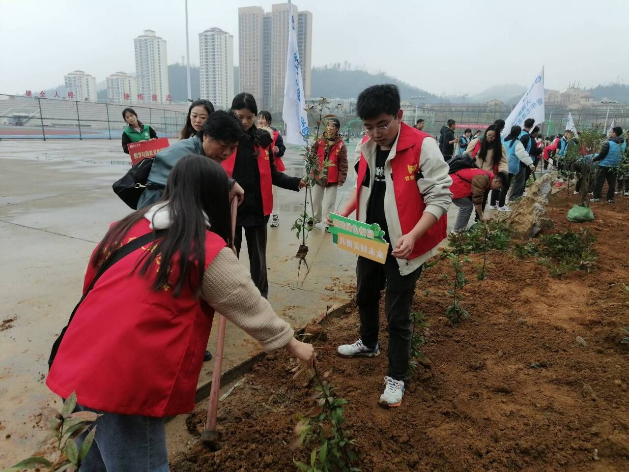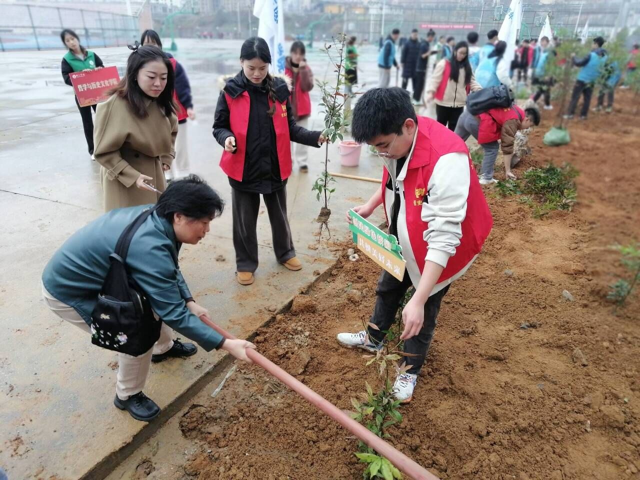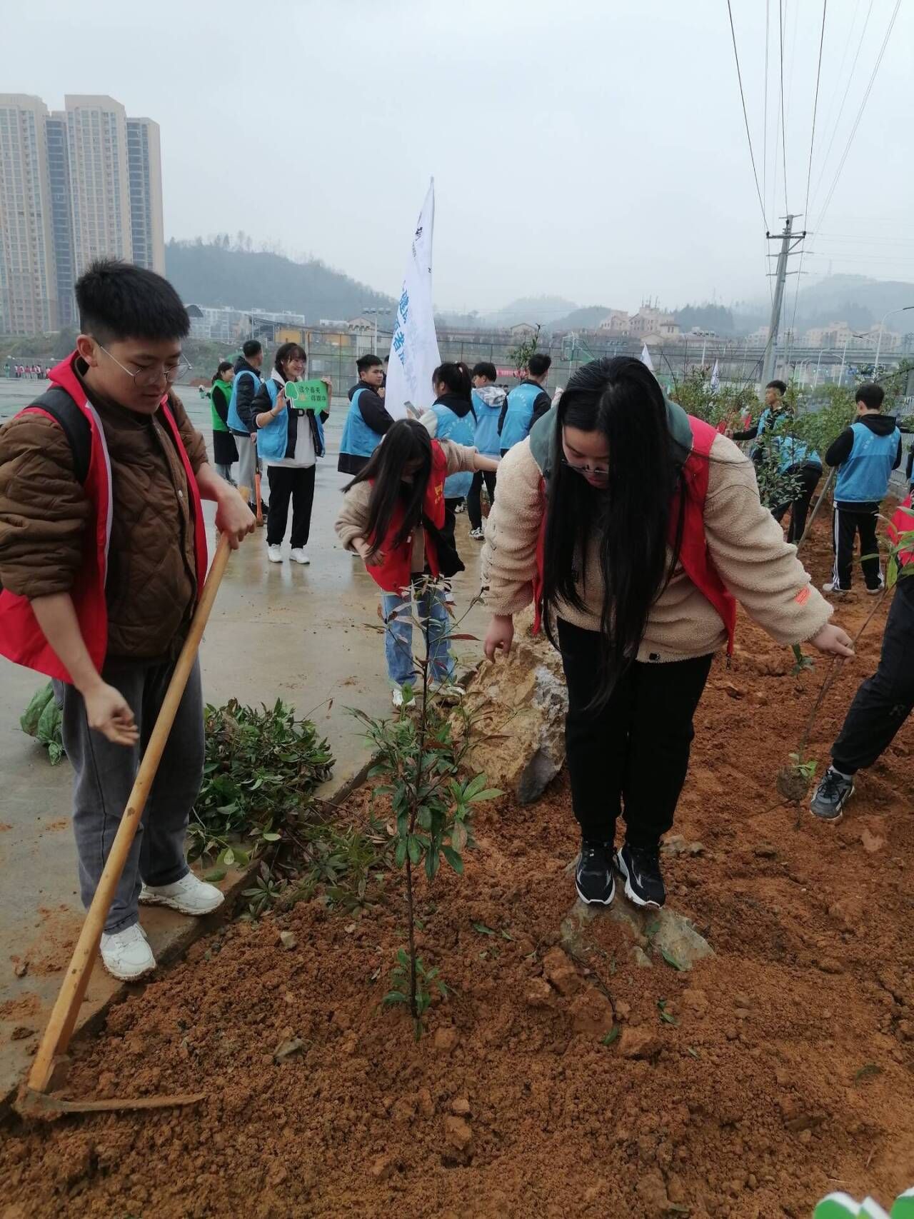 万物复苏,阳春三月,我们又迎来了一年一度的植树节。铜院为了增强广大师生珍惜绿色、关注环保的意识,构建绿色校园,打造绿色学习环境,先后2024年3月123月18日开展两次植树活动我院党委副书记杨兴英、团总支负责人姚雪洁和学生代表参加了植树活动。3月12日的植树活动启动仪式结束后,院师生按照划定的区域有序地开展植树活动师生手持铁锹盆和水壶铲土填坑、夯实土层、浇水灌根。大家团结协助,密切配合,激情满满,将一棵棵充满生机和希望的小树苗植入坑内,还为小树苗写下祝福语,在欢声笑语中圆满完成了植树任务通过这两次植树活动,不仅美化了校园环境,增强了师生们的环保意识、绿色意识,还培养了同学们团结互助的精神。大家携手共进,为植树造林事业贡献自己的一份力量,用双手为地球添绿,用爱心呵护生命,用智慧创造末来