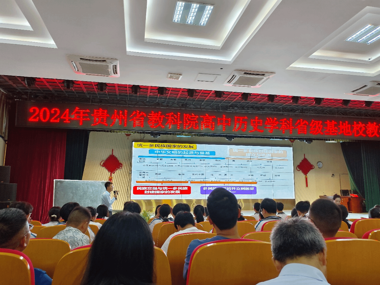 5月24日,上午展示四节示范课。首先,贵师大附中王康老师和重庆南开中学赵芷琦老师展示了《中外历史纲要》(下)第七课《隋唐制度的变化与创新》;其次,铜仁一中侯方程老师和西南大学附中刘乾老师展示了《中外历史纲要》(下)第九课《两宋的政治和军事》。示范课结束后,四位老师依次对自己的教学内容进行了说课。下午开展两次专题讲座,首先由贵阳一中正高级教师曾强开展专题讲座《立足核心素养,着力历史思维培养》;随后,北京师范大学教授李凯开展专题讲座《论纲要和选必的融合》。