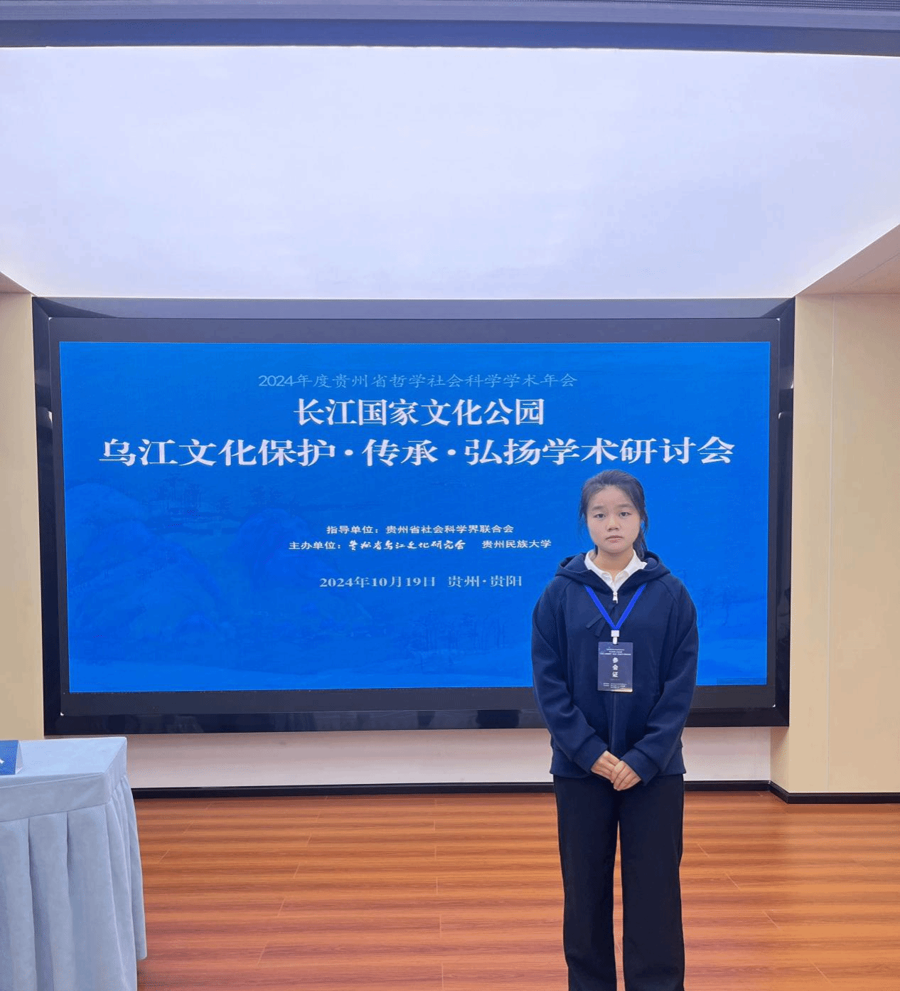 开拓学生的学术视野,培养学生的科研兴趣和学术能力,是提高本科生人才培养质量的重要内容。在杨春君副教授的指导与资助下,2023级历史学专业黄双梅、段睿敏两位同学撰写的论文《从工业开采到工业旅游——铜仁市万山区的经济蝶变》,入选2024年度贵州省哲学社会科学学术年会——长江国家文化公园乌江文化保护传承弘扬学术研讨会之论文集。10月19日,黄双梅赴贵阳参加此次研讨会,研讨会由贵州省社会科学界联合会指导,贵州省乌江文化研究会、贵州民族大学主办,旨在通过对乌江文化的保护与研究,把长江文化保护好、传承好、弘扬好,延续历史文脉,落实国家文化战略,坚定文化自信。