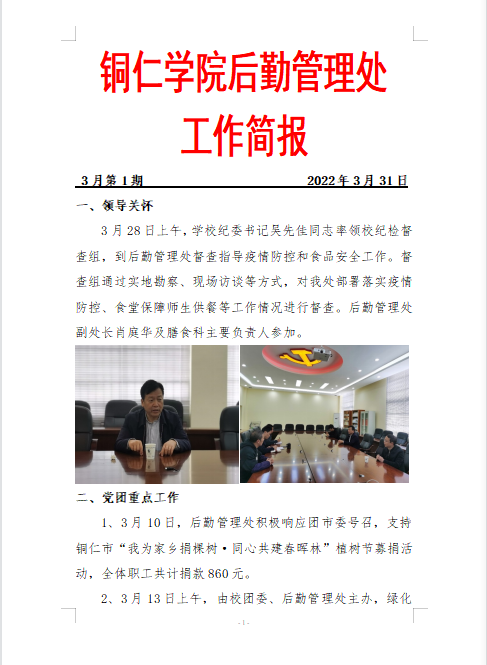 beat365英国官方网站后勤管理处工作简报(3月第1期)