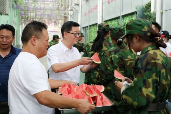 9月19日,虽然快到秋分节气,但铜仁的天气依然酷热难耐。当天下午,党委书记朱洪波、校长朱克乾、纪委书记吴先佳一行来到2023级新生军训点,看望慰问正在开展军事训练的新生,为他们送去了西瓜、矿泉水等,让大家在高强度的训练下和炎热的天气里,得到了一份清爽心情与精神鼓励。