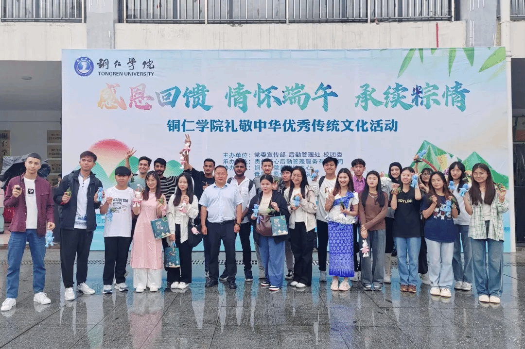 “这样才能包出好看的形状。”“这样才能把绳子扎得更紧,煮的时候不容易露馅。”在包粽子体验现场,经验丰富的食堂阿姨边包边向同学们传授经验。来自铜仁几所高校的外国留学生,也纷纷加入到活动中,与中国学生一起,学习包粽子,体验端午节文化,感受中华优秀传统文化的魅力。大家看着一个个包好的粽子,喜笑颜开,欢声笑语不断。每一颗粽子,都承载师生着对历史的敬畏、对文化的热爱和对未来的期待。