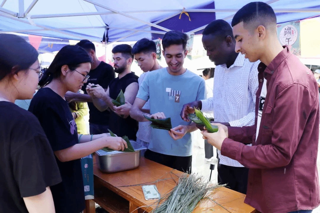 留学生体验包粽子