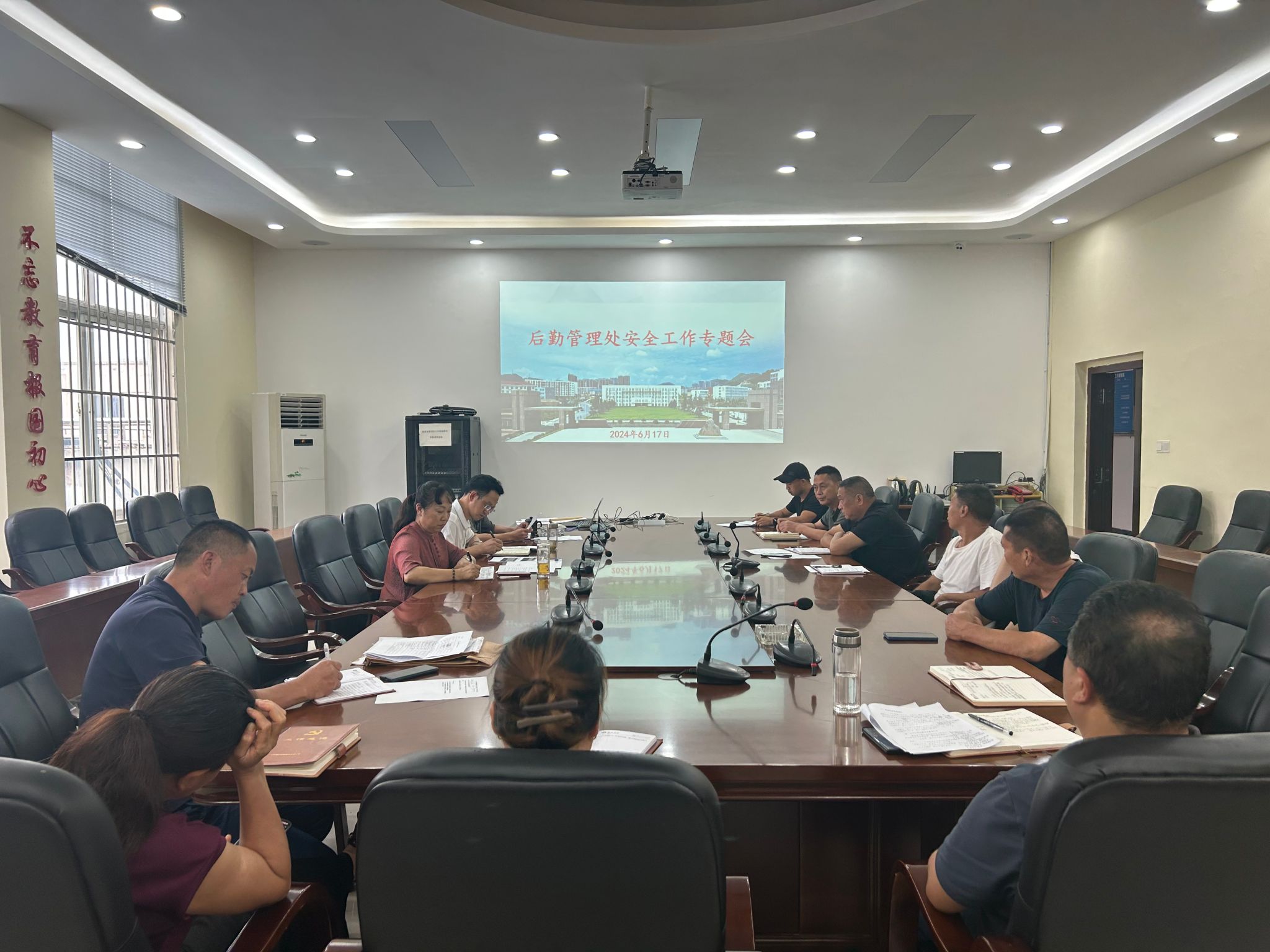 为进一步加强后勤领域安全管理,消除安全隐患,防范和遏制安全事故发生,2024年6月17日,后勤管理处召开安全工作会议,对近期安全工作进行安排部署。后勤管理处处长鲁道旺主持会议,后勤处全体教职工参加会议。