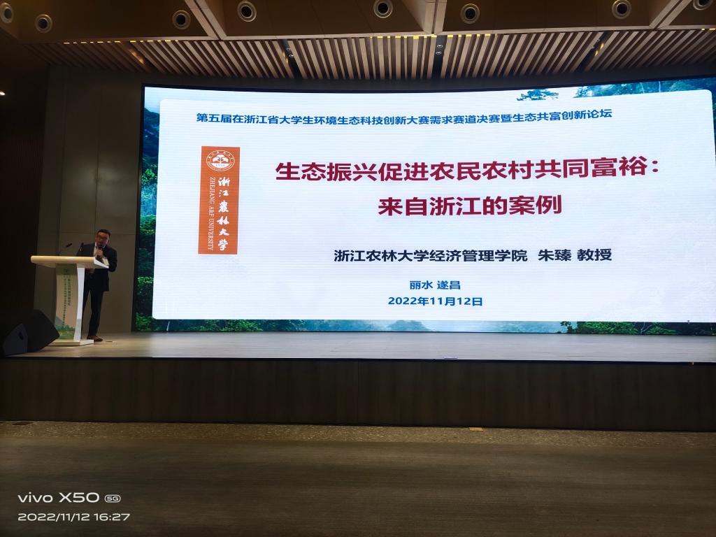 朱臻副院长受邀参加浙江省大学生环境生态科技创新大赛需求赛道决赛暨生态共富创新论坛并作主题报告 11月12-13日,由浙江省教育厅、浙江省大学生科技竞赛委员会、浙江省土壤肥料学会、浙江省生态学会主办,中共遂昌县委、县人民政府、中国计量大学承办的第五届浙江省大学生环境生态科技创新大赛需求赛道决赛暨生态共富创新论坛在遂昌县举行。开云kaiyun官方网站校长沈希出席开幕式并致辞,中央农办、农业农村部乡村振兴专家咨询委员会委员赵兴泉等出席开幕式。开幕式由副校长沈月琴主持。遂昌县领导及有关部门代表、竞赛委员会委员、竞...