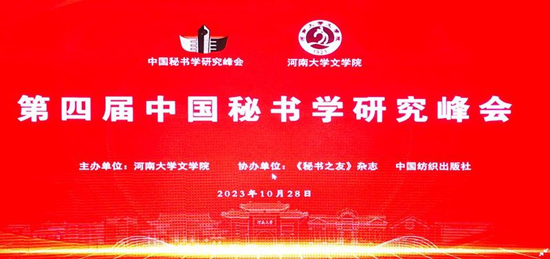 10月27日至29日,第四届中国秘书学研究峰会在河南大学召开。峰会由河南大学文学院主办,《秘书之友》杂志、中国纺织出版社协办。beat365文学与传媒学院秘书学教研室主任、秘书学专业负责人郭征帆应邀参加了本届峰会,并主持了峰会小组交流。