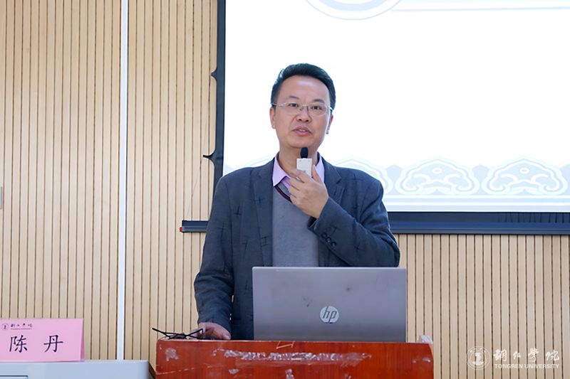 讲座开始,陈丹引用习近平总书记关于中华优秀传统文化的重要论述,引出本次讲座即将介绍的优秀传统文化——石阡“说春”,并详细阐述了“说春”的含义和历史。他说,“说春”是以口头形式提醒民众准备春耕事宜和播种时间等知识的活动,其历史悠久,是指导农业生产的民俗,曾广为流传,铜仁石阡最具代表性。以坡背村为例,此地以农耕为主,封姓居多。“说春”传承主要以春词和春贴作为传播方式。