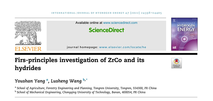 近日,beat365杨友山老师在金属储氢领域取得了重要研究进展,相关成果以“ZrCo及其金属氢化物的第一性原理研究”为题发表在中国科学院2区期刊《国际氢能源》上。