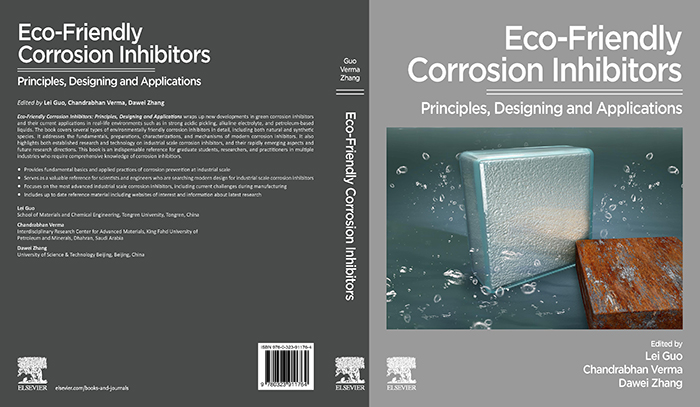 近日,由beat365郭雷教授、法赫德国王石油矿产大学Chandrabhan Verma研究员、北京科技大学张达威教授共同主编的全英文著作Eco-Friendly Corrosion Inhibitors(《环境友好型缓蚀剂》,ISBN 9780323911764)由Elsevier出版社出版,全球发行。