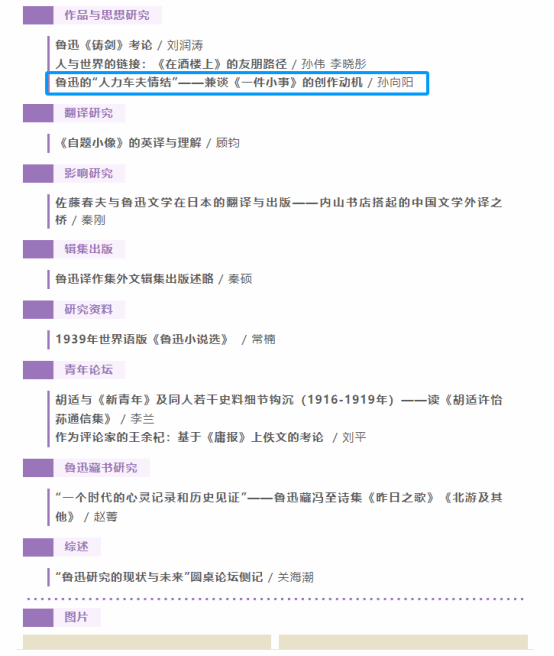 近日,我校孙向阳教授的研究论文《鲁迅的“人力车夫情结”——兼谈<一件小事>的创作动机》在CSSCI期刊《鲁迅研究月刊》2024年第9期刊发。该文将近13000字,系作者承担的贵州省哲学社会科学规划课题一般课题“蹇先艾年谱整理与研究”(21GZYB31)阶段性成果。