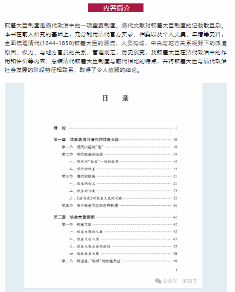 钦差大臣制度是清代政治中的一项重要制度,处理国家治理中出现的各种问题,在中国古代长期存在。《钦差大臣与清代政治(1644—1850)》分绪论、结语和六章正文,有321页,共302千字。该书以多样的史料,在前人研究的基础上,全面论述清代钦差大臣的源流、人员构成、产生原因、权力、管理规定、时代演变和在政治中的作用等内容,案例丰富,揭示了与以往不同的钦差大臣的面貌,结论扎实可信。