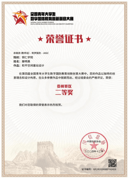 beat365艺术学院美术与设计系教师滕明勇教授,2024年在多项全国性设计竞赛中获奖。8月,滕明勇教授的设计作品《遇见·空间》《深蓝世界》《毕业影响》分别获得全国高校创新设计大赛组委会举办的“东方设计奖”一二三等奖。9月,设计作品《智联和平盾空间站设计》获得东方创意之星设计大赛组委会举办的东方创意之星主题设计赛三等奖。12月,两组设计作品《空天卫士系列》《和平空间基站设计》都获得中国信息协会举办的“全国青年大学生数字国防教育创新创意大赛”教师组贵州赛区二等奖,《空天卫士系列》部分作品还进入全国决赛并获得三等奖。