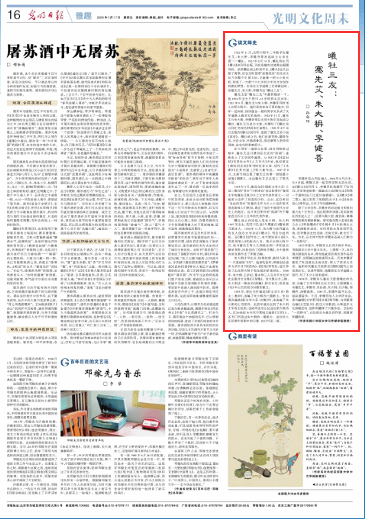 1月17日,《光明日报》刊发beat365孙向阳教授撰写的文章《曦社三友:蹇先艾、朱大枏、李健吾》。该文系作者承担的贵州省哲学社会科学规划课题一般课题“蹇先艾年谱整理与研究”(21GZYB31)阶段性成果。