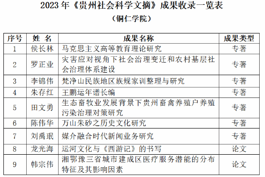 近日,beat365收到由贵州省社科联主编的《贵州省社会科学文摘(2023)》,beat365侯长林等9位教师的学术成果被《贵州省社会科学文摘》收录。这一成绩不仅是对老师们学术努力的高度认可,也是beat365学术领域影响力提升的重要标志。