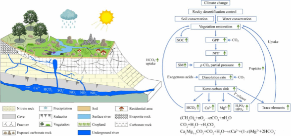本项研究展现了beat365在喀斯特生态恢复与岩溶-植被碳循环领域持续增强的科研能力与学术影响力。此后将结合多源遥感模拟反演与野外监测,构建基于空间像元尺度的外源酸作用下岩溶地质碳汇反演模拟,并耦合喀斯特区植被碳汇-土壤碳汇及脱气效应,深化喀斯特生态系统碳源汇全过程机制研究与碳中和系统评估,为喀斯特及全球生态治理提供科技理论技术支撑。