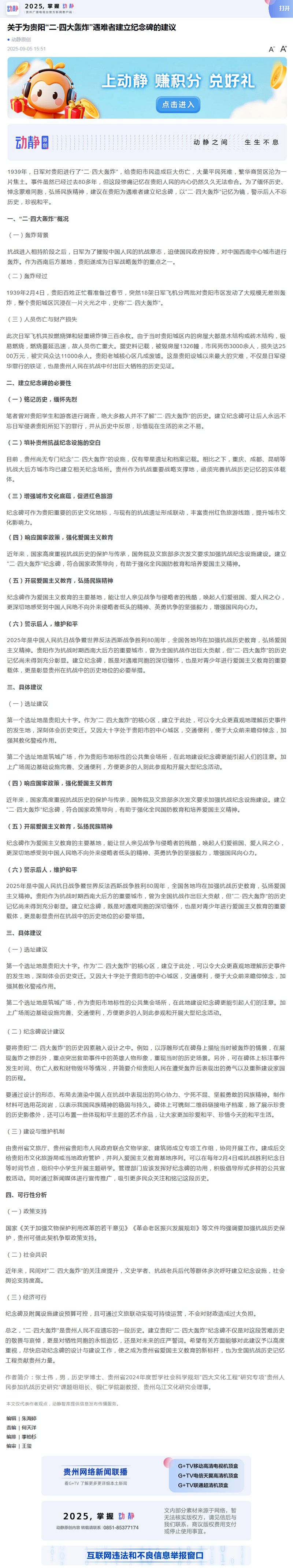 《关于为贵阳“二·四大轰炸”遇难者建立纪念碑的建议》在贵州最大的官方新闻客户端、贵州广播电视台主办的《动静》发表后,迅速引发了社会各界的广泛关注和积极响应。