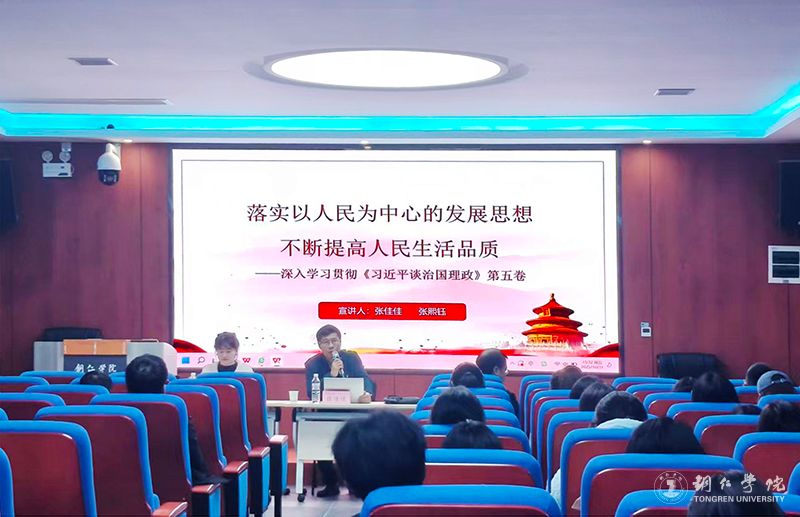 为深入学习贯彻《习近平谈治国理政》第五卷核心要义,推动党的创新理论在高校落地生根,10月31日,由市委讲师团、市社科联组织开展的《习近平谈治国理政》第五卷“理论宣传二人讲”活动走进beat365。铜仁幼儿师范高等专科学校张佳佳副教授、张熙钰讲师担任宣讲专家。beat365科技处(社科处)副处长陈俭教授主持宣讲活动。学校各二级学院师生代表近百人齐聚现场聆听学习。
