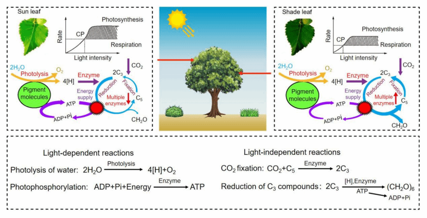 阳叶与阴叶的光合作用驱动机制图