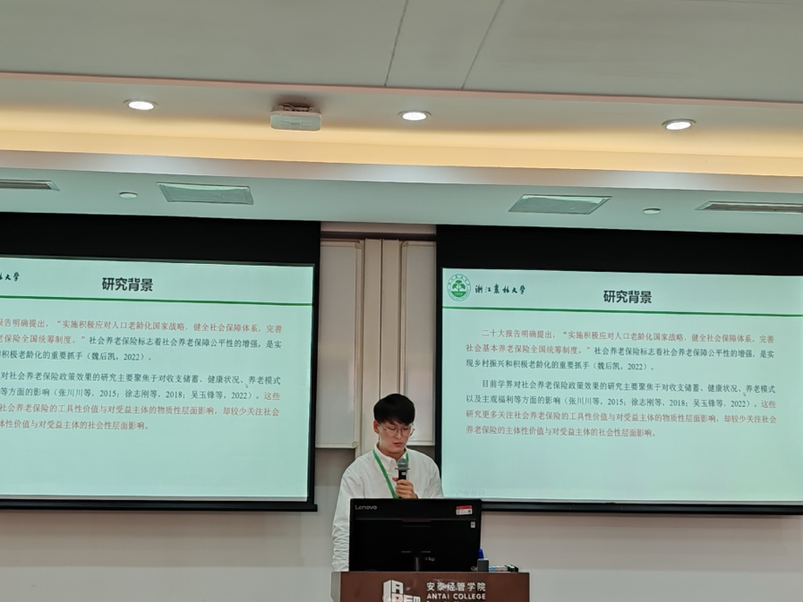 我校开云kaiyun官方网站2021级农业管理硕士研究生吕良瑞和2023级农业经济管理硕士研究生许江帆分别就《社会养老保险对农村老年人社会适应的影响—基于中国老年社会追踪调查的实证研究》和《粮食安全背景下农业化学投入品减量的生态补偿标准研究—基于作物差异的分析》在“分论坛五:老龄化、教育与健康”和“分论坛四:绿色与低碳”分会场中进行主题演讲,其中许江帆同学担任分论坛下半场主持。本次论坛由院长助理杨建辉副教授带队,并在 “分论坛二:数字经济”分会场中担任点评专家。参加本次论坛,展现了开云的研究生研究水平,拓宽了研究生的学术视野,助推了研究生科研能力的培养,也加强了与兄弟院校研究生之间的沟通交流。