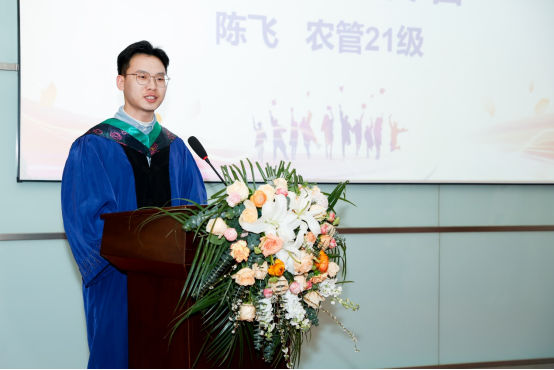 导师代表王凤婷、毕业生代表陈飞依次发言。