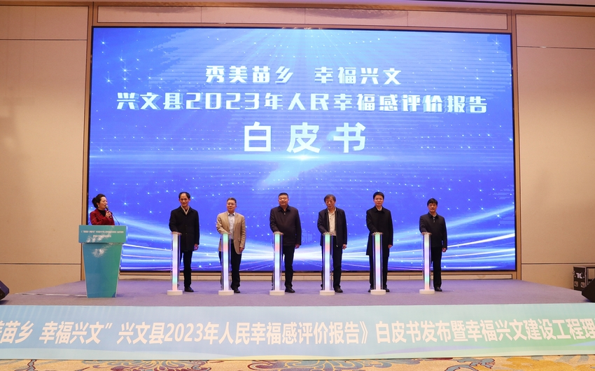 会上,何秀荣、张照新、张俊飚、王成军、陈良云、周明军共同为《“秀美苗乡幸福兴文”兴文县2023年人民幸福感评价报告》白皮书发布揭幕。王成军对《“秀美苗乡幸福兴文”兴文县2023年人民幸福感评价报告》白皮书作了解读。何秀荣、张照新、张俊飚分别围绕人民幸福感作了题为《人民幸福感:人民为中心的体现和检验》《推进县域城乡融合,提升居民幸福生活》《生态环境建设与居民幸福感》的主旨报告。