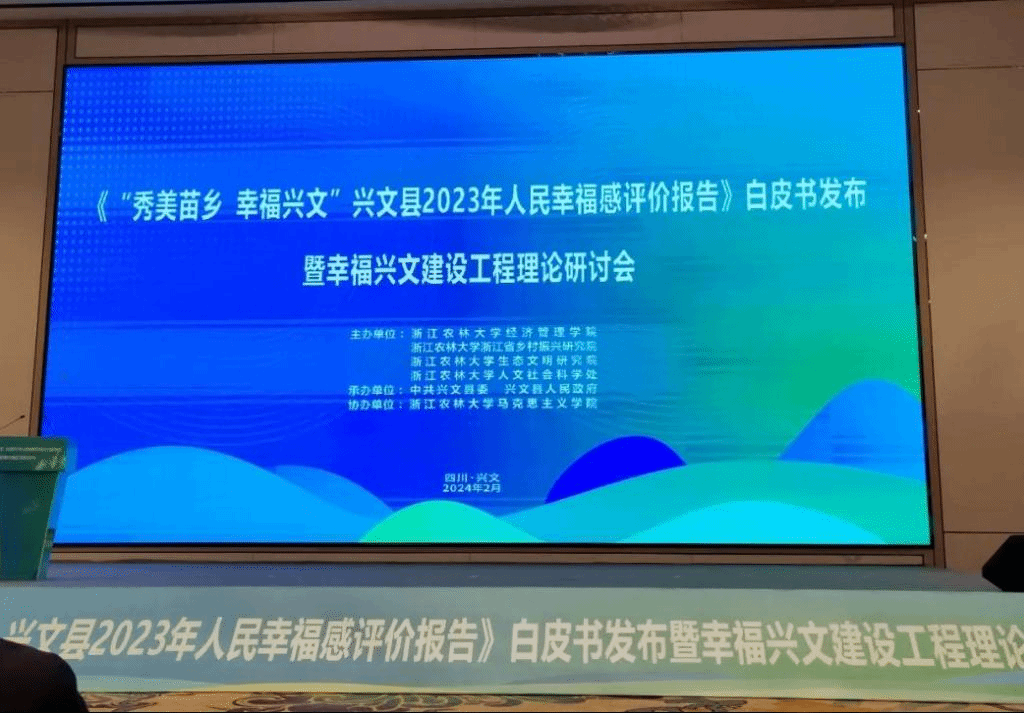 2月27日,由开云kaiyun官方网站与浙江省乡村振兴研究院、生态文明研究院、人文社会科学处主办,中共兴文县委、兴文县人民政府承办,马克思主义学院协办的《“秀美苗乡 幸福兴文”兴文县2023年人民幸福感评价报告》白皮书发布暨幸福兴文建设工程理论研讨会在四川省宜宾市兴文县举行。