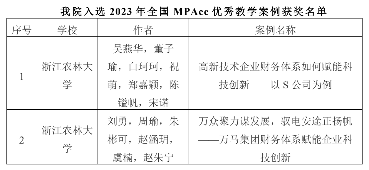 近日,全国会计专业学位研究生教育指导委员会公布了2023年会计硕士专业学位优秀教学案例评选结果。开云kaiyun官方网站吴燕华团队和刘勇团队的2项案例成功入选全国MPAcc优秀教学案例库。