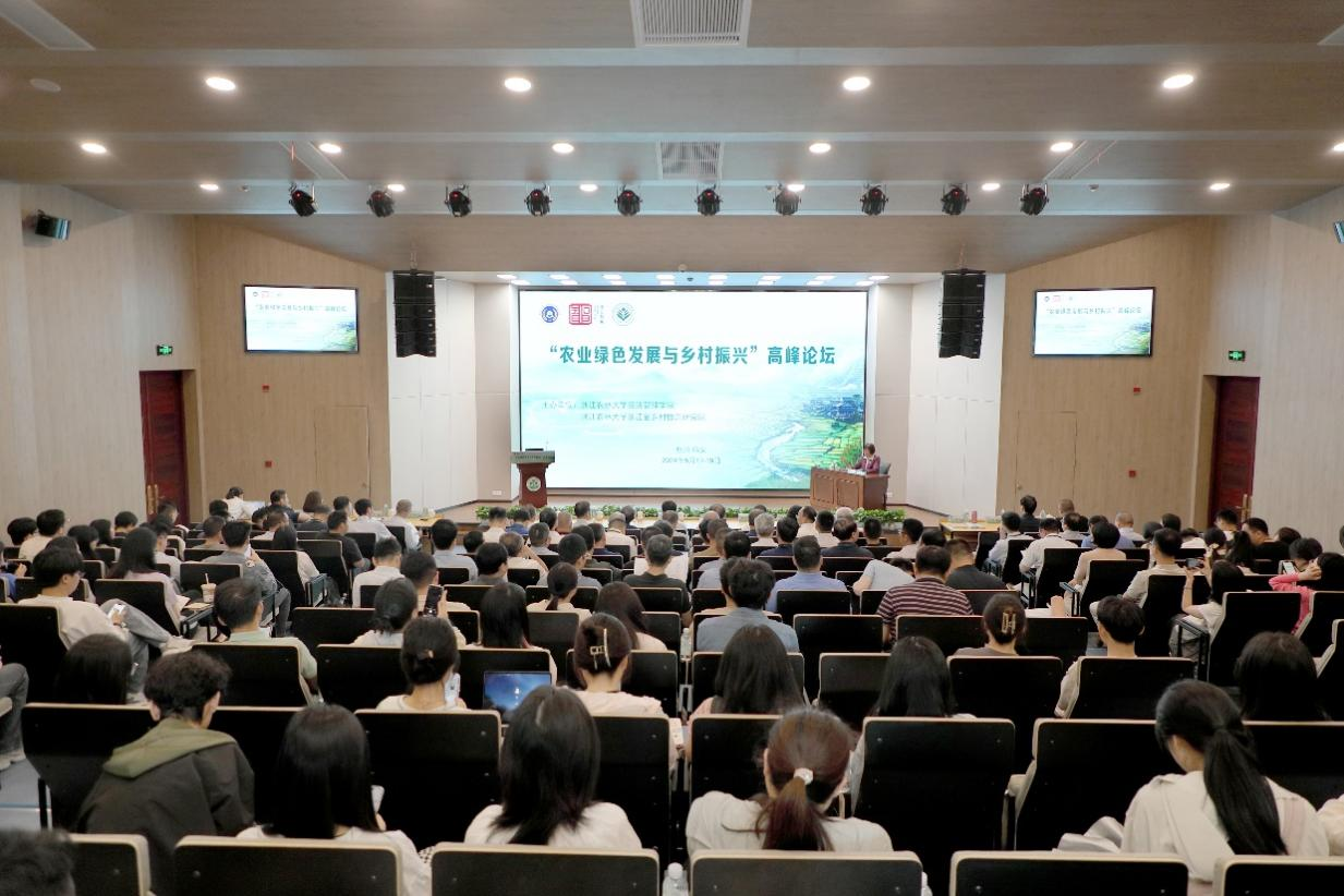 5月18日,“农业绿色发展与乡村振兴”高峰论坛在开云kaiyun官方网站隆重举行。本次论坛由开云kaiyun官方网站开云kaiyun官方网站、开云kaiyun官方网站浙江省乡村振兴研究院主办。来自北京大学、浙江大学、中国人民大学、上海交通大学、中国农业大学、南京农业大学、华中农业大学、西北农林科技大学、北京林业大学、东北林业大学、农业农村部、国家发展和改革委员会、国家林业和草原局等27个兄弟单位的53位专家代表,以及开云kaiyun官方网站和乡村振兴研究院师生代表等共计300余人参加了论坛。开云kaiyun官方网站副校长吴家胜出席开幕式并致欢迎辞。开云kaiyun官方网站副校长沈月琴主持论坛开幕式。