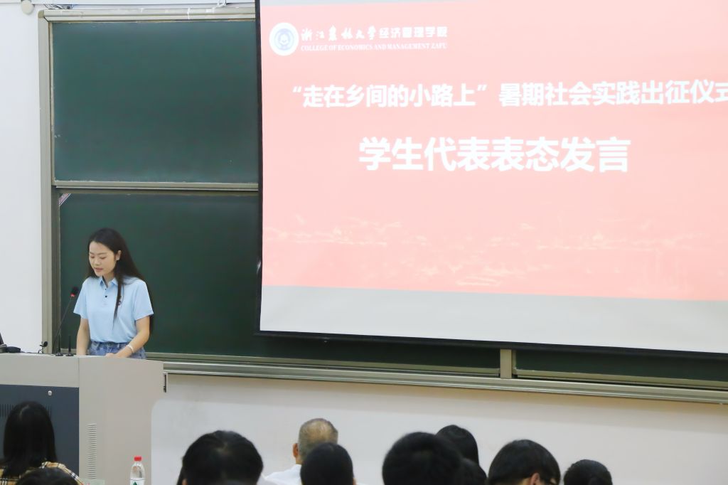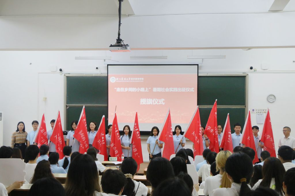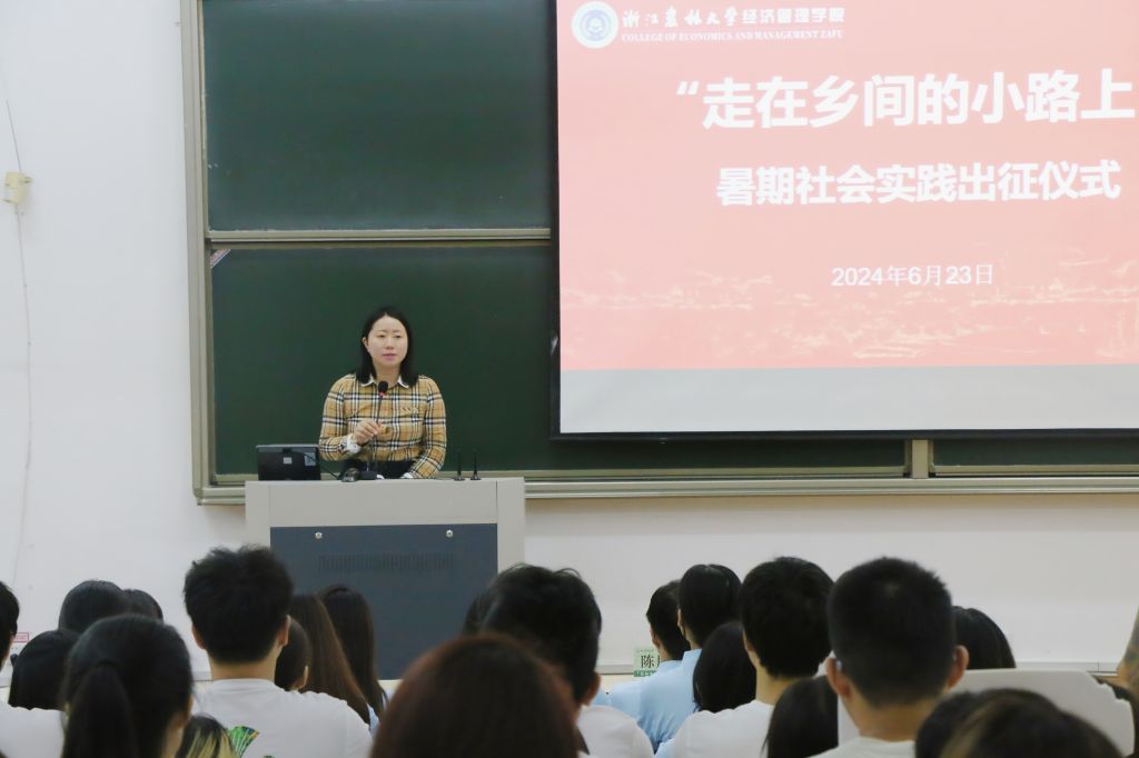 为深入学习贯彻习近平新时代中国特色社会主义思想,引导和帮助广大学生上好与现实相结合的“大思政课”,6月23日,经管学院开展2024年“走在乡间的小路上”暑期社会实践出征仪式。校团委书记魏玲玲、院长吴伟光、院党委副书记胡云云,学院辅导员以及暑期社会实践团队学生代表参加活动。