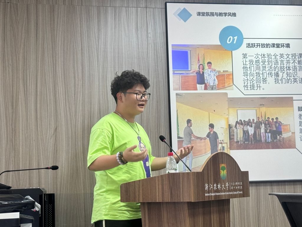 会上,带队老师介绍了此次暑期访学活动的基本情况,随后访学学生分别从学习内容、生活习惯、基础设施等多方面向大家介绍暑期访学过程中的亲身感受,并将个人观察到的中塞文化差异、学习收获、成长与感悟等向与会领导老师进行汇报。同学们的精彩分享不仅使访学学生重温了美好、感动不已;参会的领导老师也被深深吸引,纷纷肯定了此次访学活动的成效,对同学们的精彩展现表示欣慰。