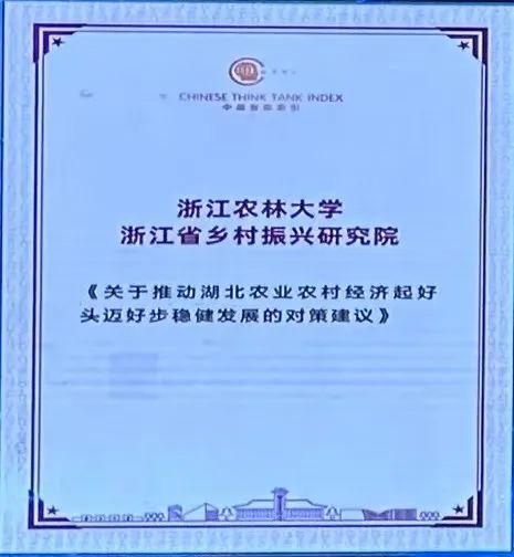 成果《关于推动湖北农业农村经济起好头迈好步稳健发展的对策建议》《关于高效生态农业的理论溯源及加快高效生态农业强省建设的若干建议》获评2024年度CTTI智库研究优秀成果二等奖。